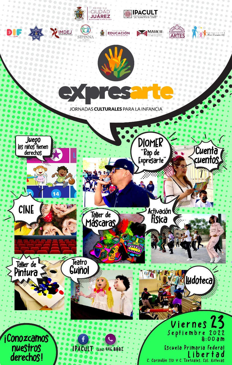 El programa “ExpresArte” del Instituto para la Cultura del Municipio de Juárez (IPACULT), está de regreso en las aulas para el próximo viernes 23 a las 8:00 de la mañana, ahora en la Escuela Primaria Federal Libertad, situada en la calle Corindón número 110, de la colonia Azteca.