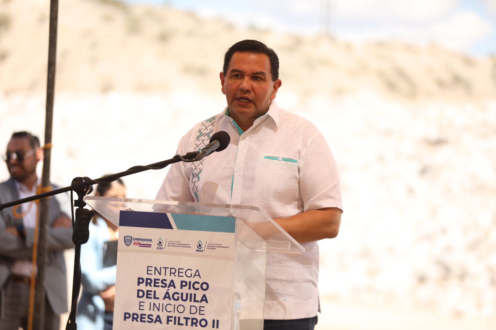 El Presidente Municipal, Cruz Pérez Cuéllar, acompañó este día a la Gobernadora del Estado, María Eugenia Campos Galván, en la entrega de la presa Pico del Águila y la Presa Filtro II, en la cuenca del Arroyo de las Víboras, al norponiente de la ciudad.