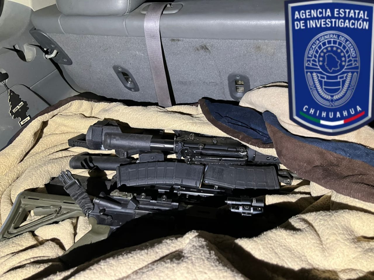 Dentro de las diligencias efectuadas en la persecución e investigación de delitos contra la vida, elementos de la Fiscalía de Distrito Zona Norte, intervinieron un inmueble en la colonia Granjas de Chapultepec, en Ciudad Juárez, en donde detuvieron a dos personas y aseguraron 11 armas de fuego y cientos de municiones.