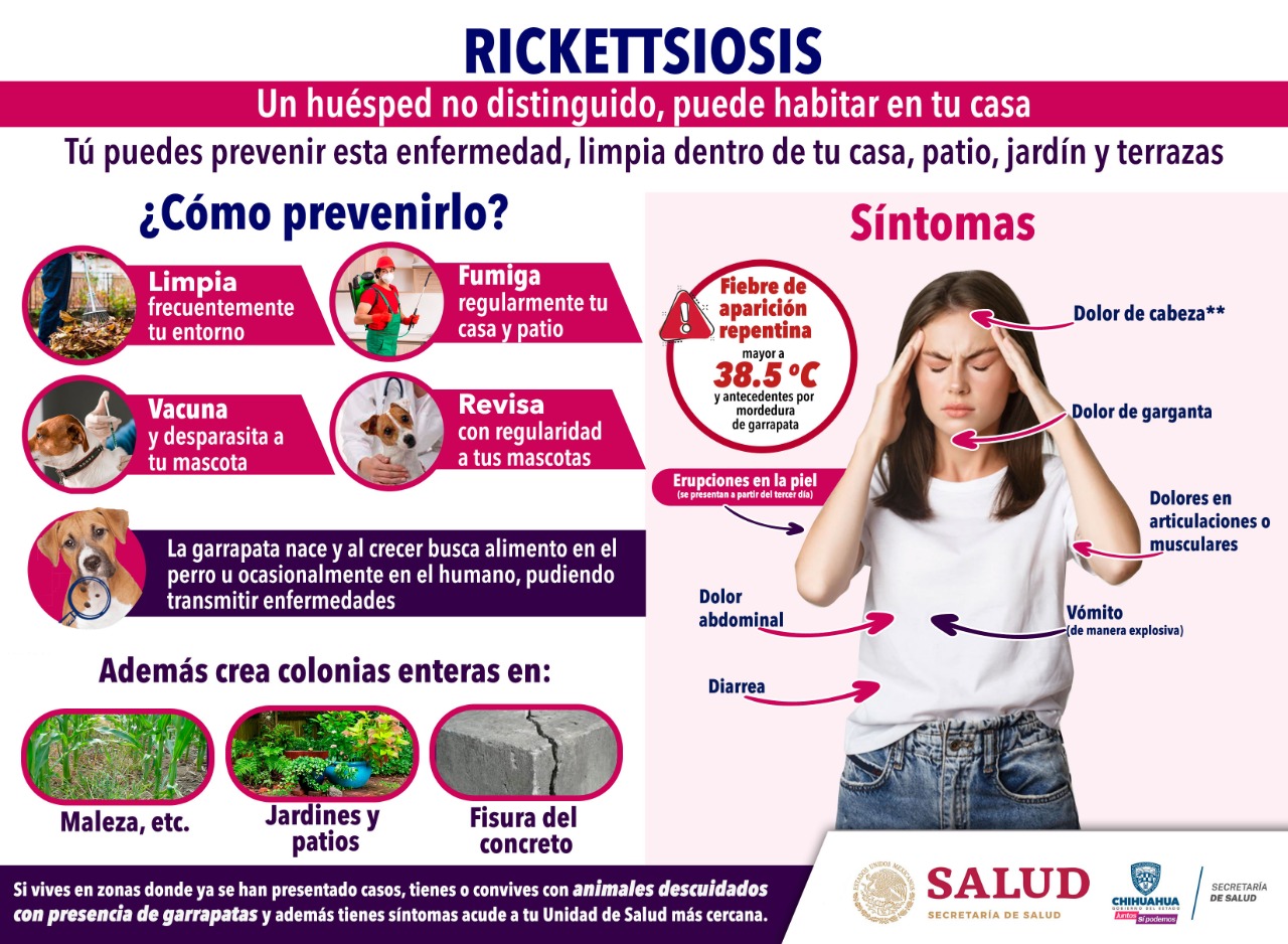 La Secretaría de Salud, a través del Programa de Rabia y otras Zoonosis, exhorta a la ciudadanía a realizar las acciones de higiene, la limpieza de los hogares y el cuidado responsable de las mascotas, para prevenir el padecimiento de la rickettsiosis.