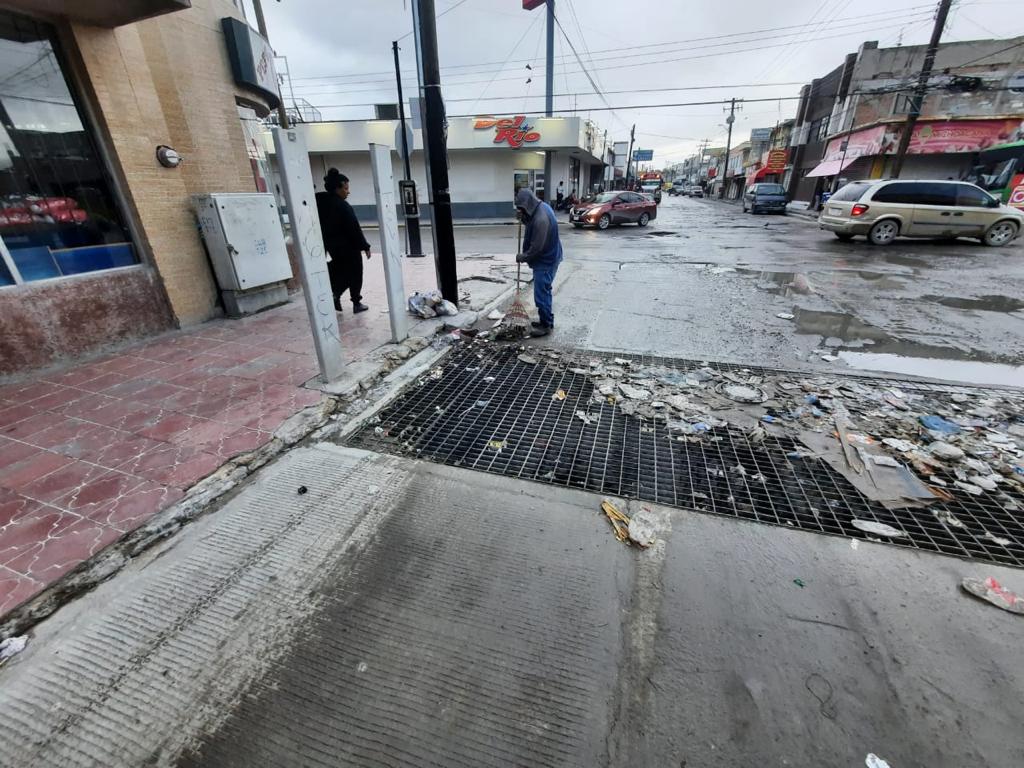 Equipo operativo de la Dirección de Limpia destinado a la limpieza de la zona Centro de la ciudad, trabaja en retirar la basura del drenaje que se ubica en la calle Francisco Javier Mina, entre Miguel Ahumada y Paso del Norte.