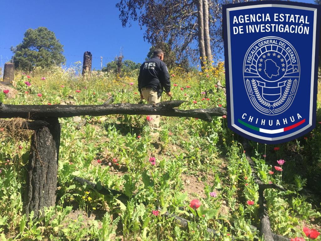 La Fiscalía General del Estado a través de elementos de la Agencia Estatal de Investigación (AEI) con destacamento en la localidad de Baborigame, del municipio de Guadalupe y Calvo, localizaron y destruyeron un plantío de amapola.