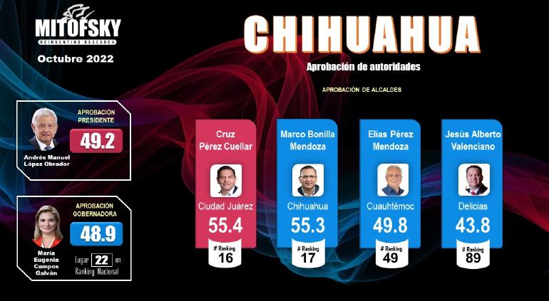 Publicó los resultados de las encuestas de aprobación de autoridades en el estado de Chihuahua del mes de octubre.