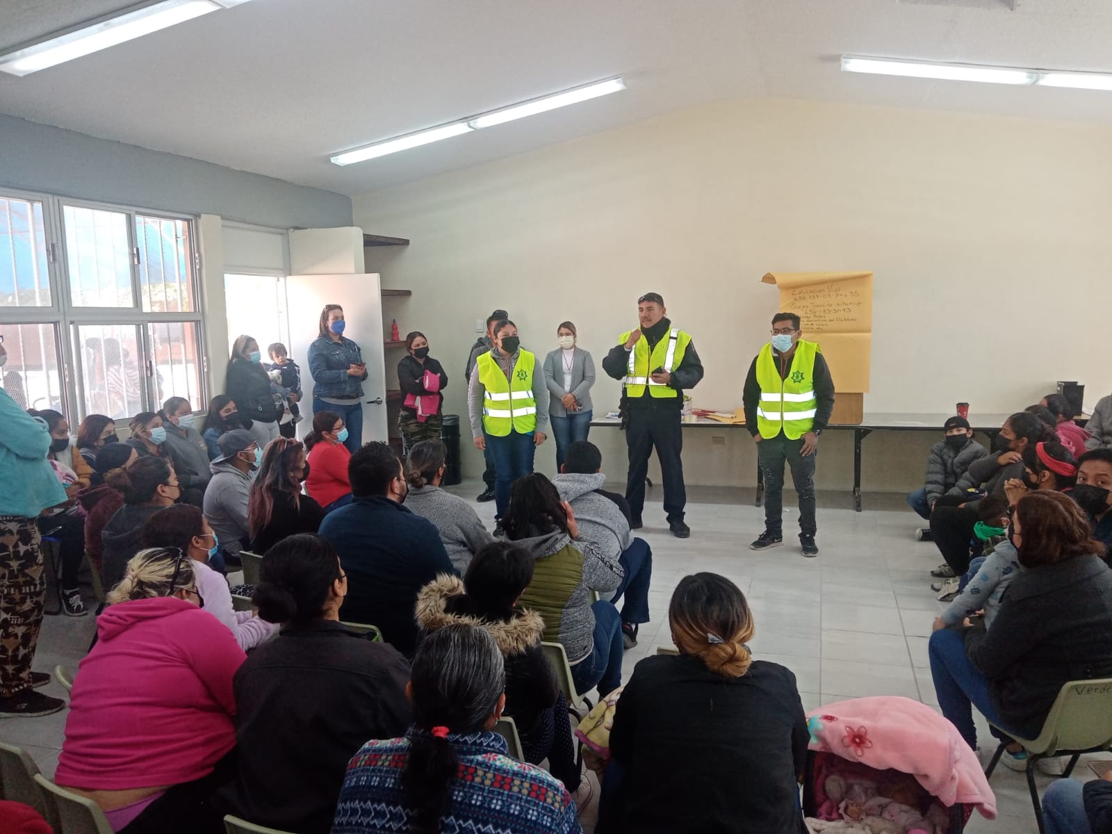 Agentes de la Coordinación General de Seguridad Vial capacitaron en materia de brigadas escolares a 28 padres y madres de familia del jardín de niños Netzahualcóyotl, así como a 132 familiares de los pequeños que estudian en el preescolar Julia Rosa Holguín Posada.
