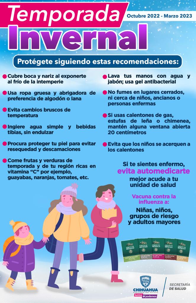 Ante el descenso de temperatura causado por la temporada invernal, la Secretaría de Salud exhorta a la ciudadanía a seguir las recomendaciones de prevención y cuidado para evitar que se presenten casos de intoxicación de monóxido de carbono, quemaduras o hipotermia.
