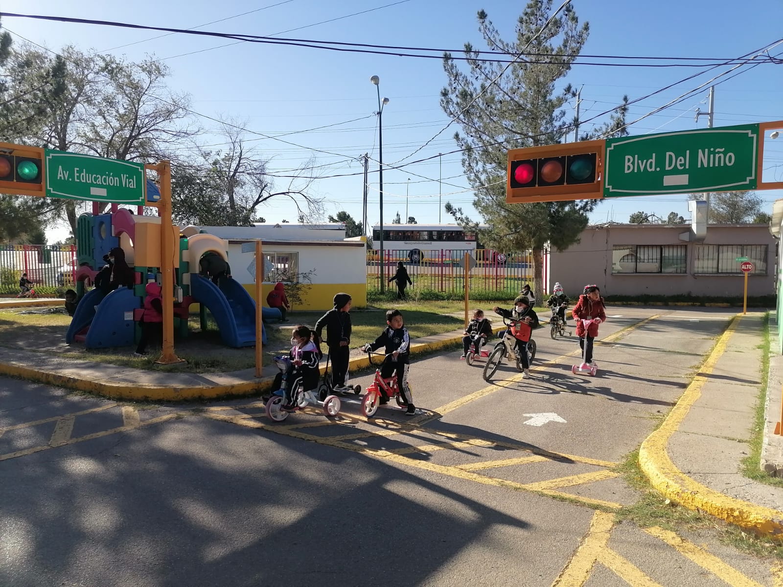 Personal adscrito al área de Educación Vial, de la Coordinación General de Seguridad Vial recibió a 156 pequeños, 24 padres y madres de familia, así como a ocho maestros del jardín de niños Bertha Tarín Amaya para darles un recorrido guiado por las instalaciones de la miniciudad vial.