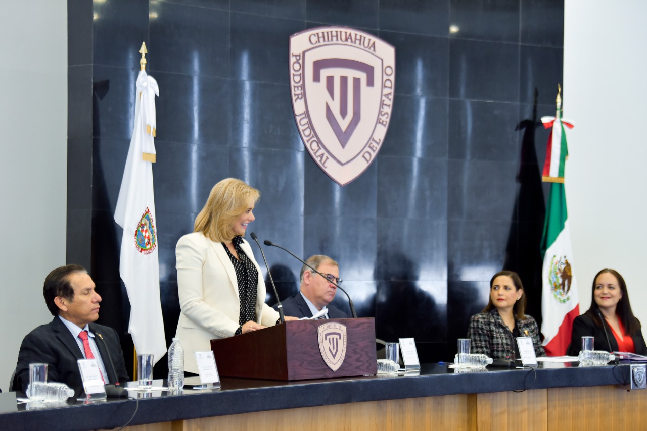 La gobernadora Maru Campos destacó que ahora se cosecha el trabajo de los homenajeados y expresó su reconocimiento a los expresidentes del tribunal, enfatizó que el Estado de Derecho se mantiene por un ideal de justicia de los tres poderes: ejecutivo, legislativo y judicial.
