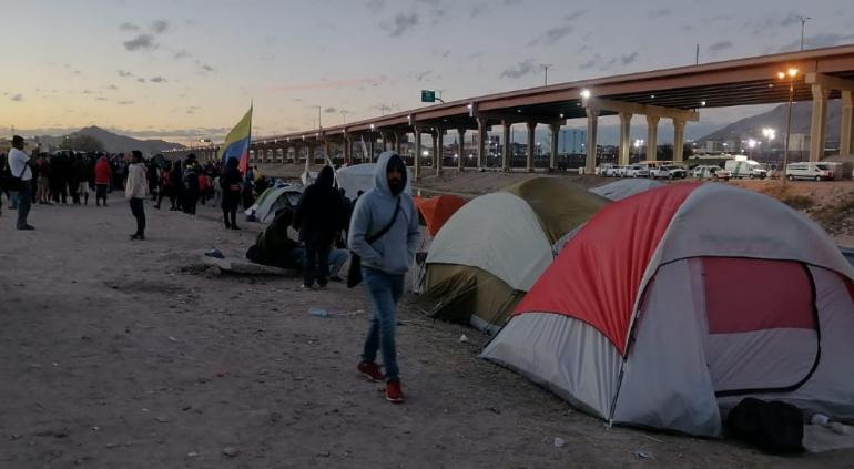 En el lugar actualmente hay más de mil 300 migrantes en 350 carpas y casas de campaña, las cuales no los protegen del clima.