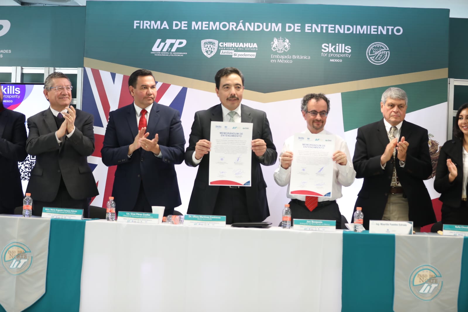 Se informó que con la firma del documento se fortalece la alianza entre instancias y se da seguimiento al programa Skills for Prosperity México, iniciativa del gobierno de Reino Unido para mejorar la calidad y relevancia de la educación para el empleo, mediante una inversión de 3 millones de pesos para el equipamiento de laboratorios y la puesta en marcha de capacitaciones a personal docente.