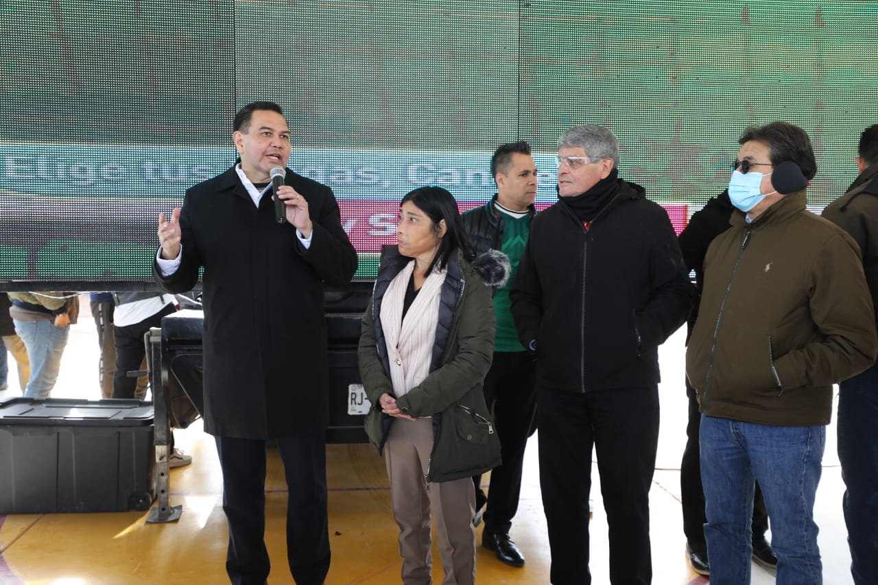Personal de la Dirección de Atención Ciudadana acompañó al Presidente Municipal, Cruz Pérez Cuéllar, a la transmisión del primer partido de la Selección Mexicana en el Mundial de Qatar 2022, para atender las peticiones de la ciudadanía que asistió al Centro de Estudios Científicos y Tecnológicos (CECyT) plantel 9, en Lomas de Poleo.