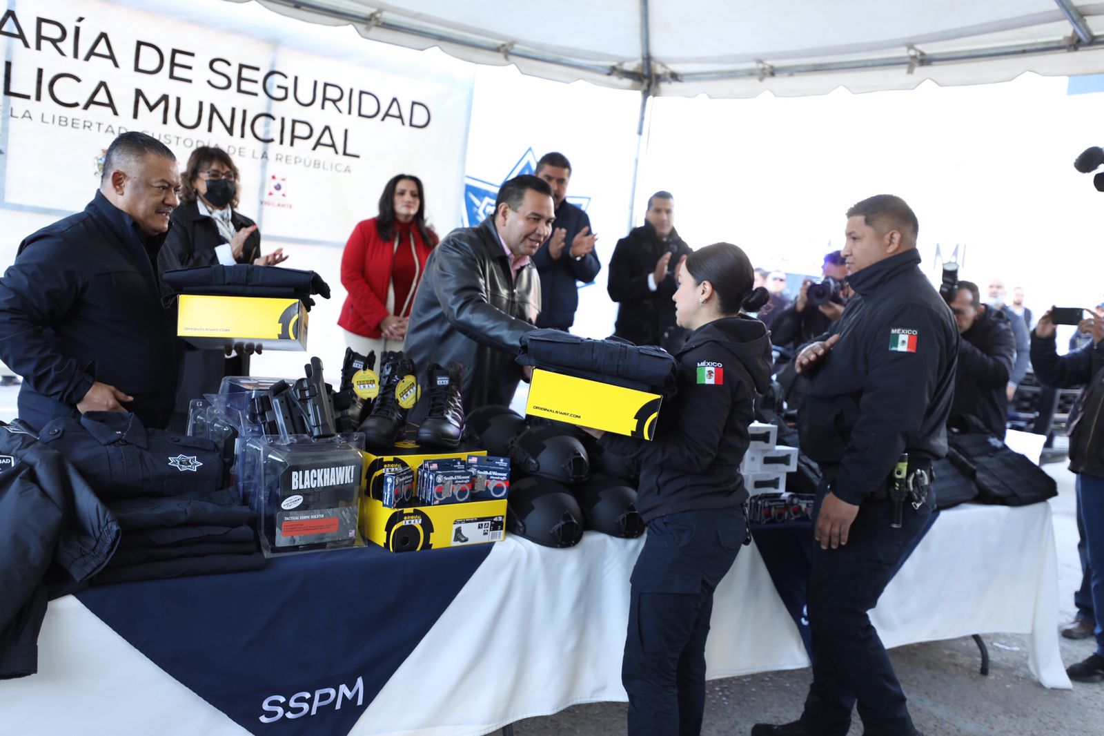 El Presidente Municipal, Cruz Pérez Cuéllar, encabezó la entrega de uniformes y equipo con un valor de 60 millones de pesos, para los elementos de la Secretaría de Seguridad Pública Municipal (SSPM) y de la Coordinación General de Seguridad Vial (CGSV).