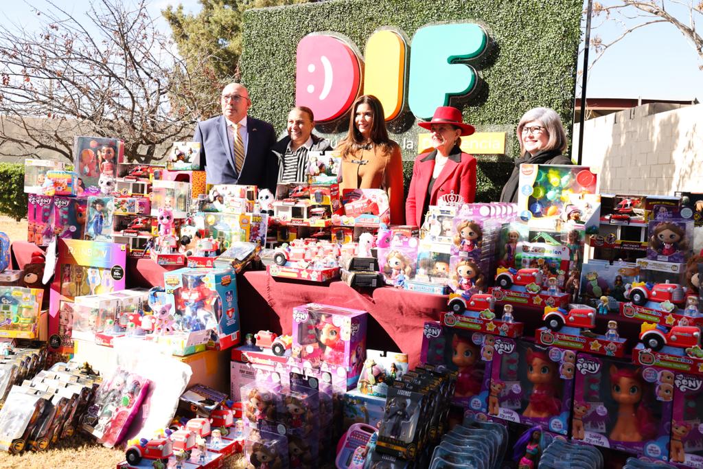 La presidenta del Sistema para el Desarrollo Integral de la Familia Rubí Enríquez recibió a una comitiva de autoridades y empresarios de la vecina ciudad de El Paso que hicieron entrega de juguetes y dulces para infancias y adolescencias de zonas de atención prioritaria, que serán obsequiados en la gran fiesta de Santa Bombero.