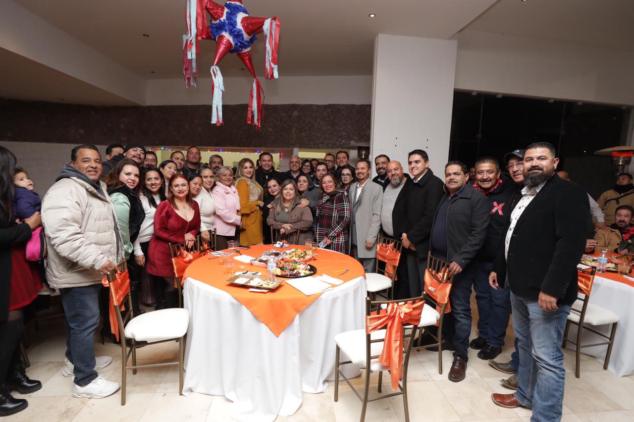 El Presidente Municipal, Cruz Pérez Cuéllar, asistió a convivir con integrantes de la Sección 8 del Sindicato Nacional de Trabajadores de la Educación, quienes realizaron una posada con motivo de las fiestas decembrinas en el salón DIVERSNTE Juárez.