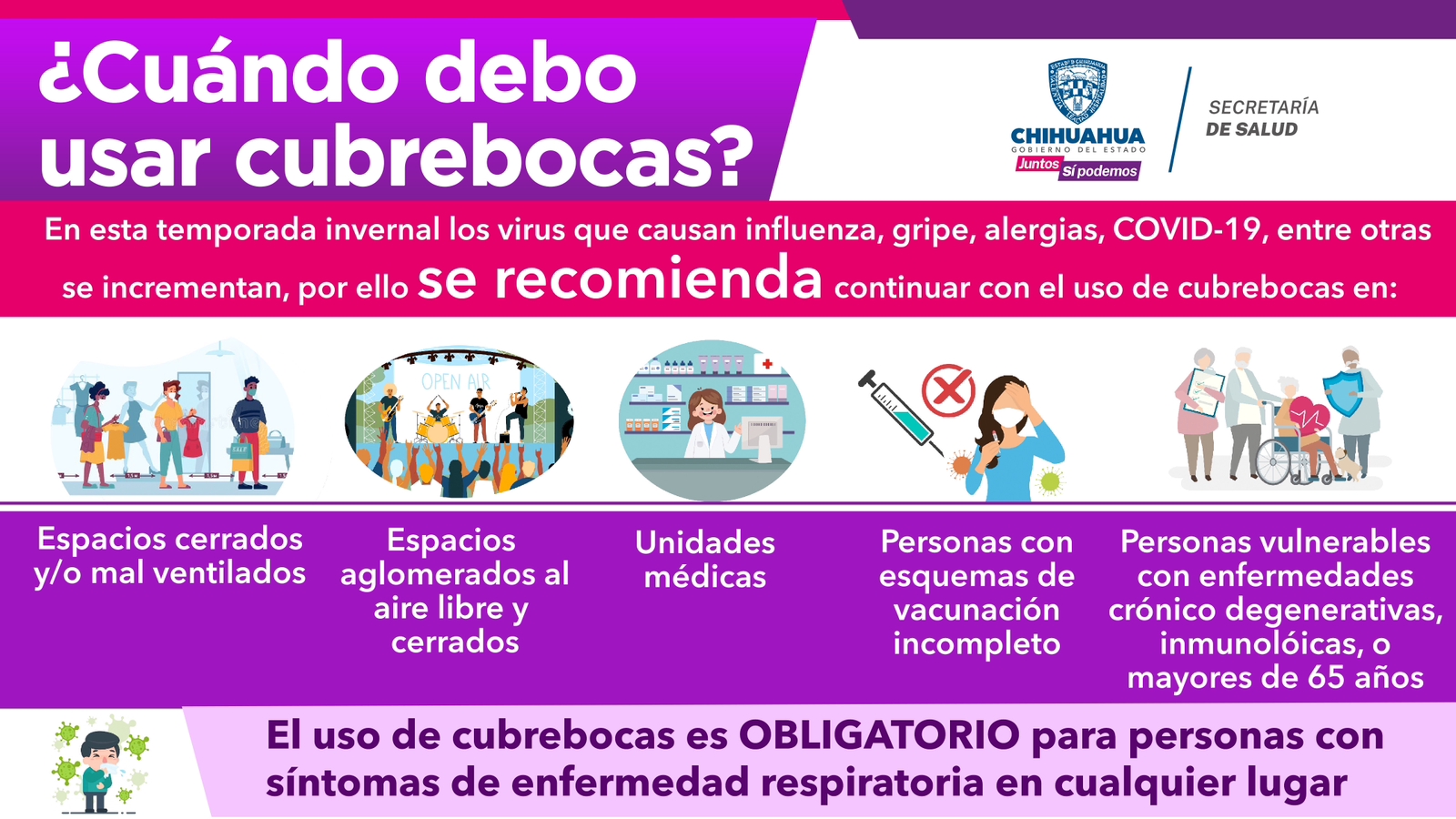 La Secretaría de Salud exhorta a las y los ciudadanos a continuar con las medidas preventivas como el uso responsable del cubrebocas, la sana distancia y el lavado de manos para evitar el incremento de casos por COVID-19 y otras enfermedades respiratorias.