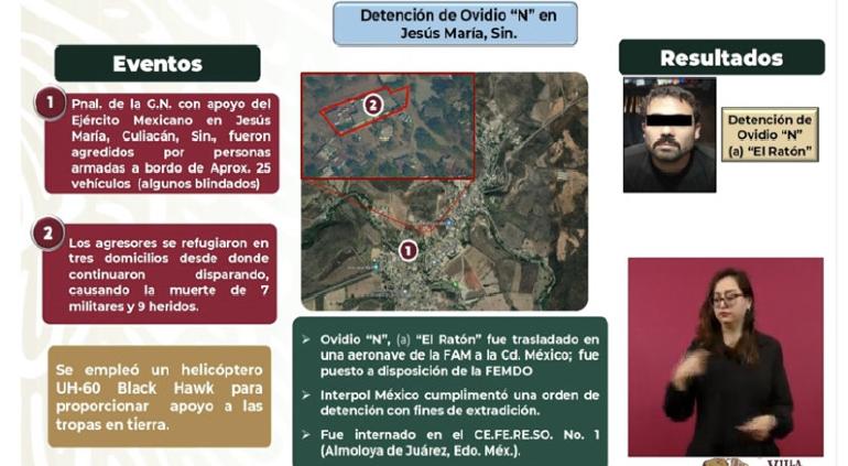 Perdieron la vida siete elementos militares durante el enfrentamiento del día de ayer en el que fue capturado Ovidio Guzmán López, hijo de Joaquín “El Chapo” Guzmán Loera.