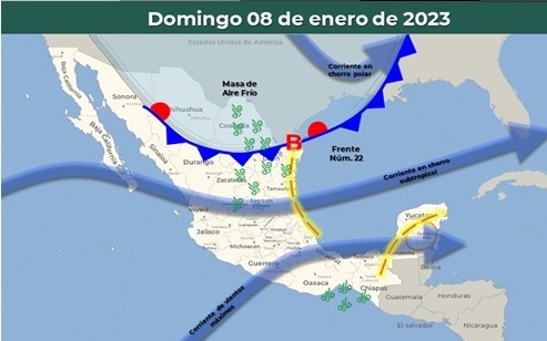Lo anterior derivado del Frente Frío número 22 que ingresó a la entidad el pasado viernes 06 de enero.