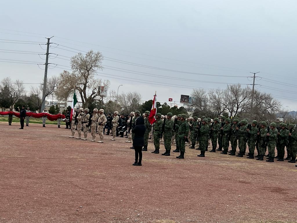 En la ceremonia participaron elementos de la Guarnición Militar, Guardia Nacional y corporaciones municipales, quienes rindieron honores a la bandera y entonaron el Himno Nacional, mientras se izaba la bandera.