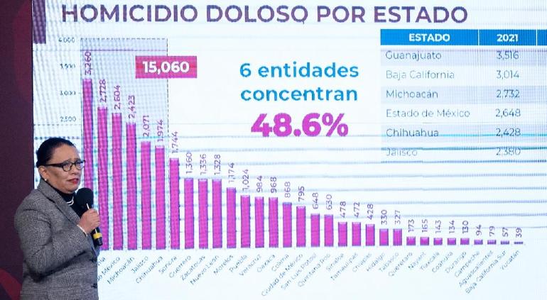 Rosa Icela Rodríguez Velázquez, secretaria de Seguridad y Protección Ciudadana, dio a conocer el reporte al cierre de seguridad con cierre en el 2022.
