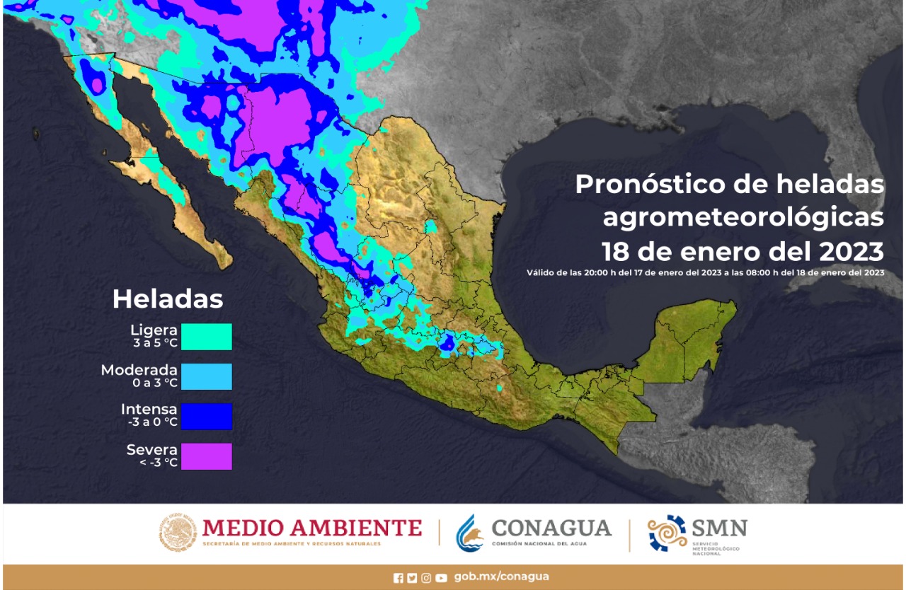 El frente frío Núm. 25 avanzará sobre el norte y noreste de la República Mexicana, favoreciendo la probabilidad de lluvias aisladas en Tamaulipas, por su parte, la Tercera Tormenta Invernal se localizará próxima a la frontera norte de México, dichos sistemas mantendrán el ambiente muy frío a gélido, así como fuertes rachas viento con tolvaneras en el noroeste y norte del país, además de condiciones para la caída de nieve y/o aguanieve en zonas serranas de Sonora y Chihuahua.