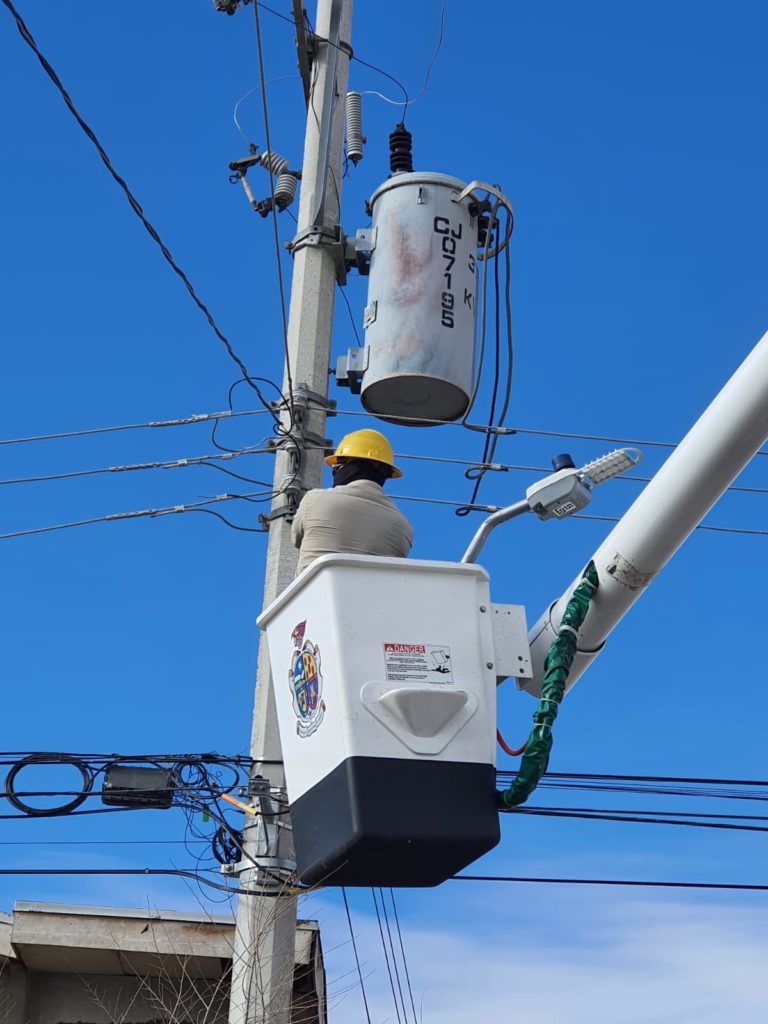 Con diez cuadrillas operativas de Alumbrado Público, la Dirección General de Servicios Públicos trabaja en la instalación de luminarias de tecnología led en el ejido San Isidro, con el fin de mejorar las condiciones de iluminación del poblado.