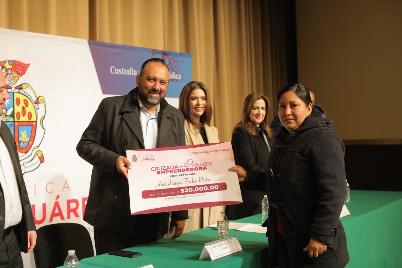 Entrega Cruzada por la Mujer Emprendedora apoyos económicos a jefas de familia.