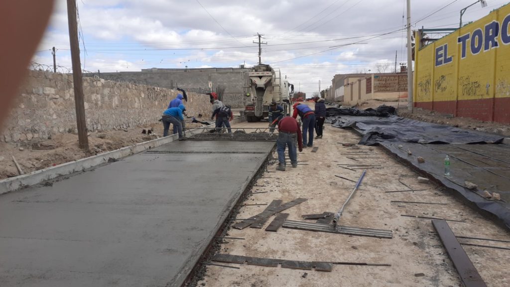 El funcionario informó que las cuadrillas de la dependencia trabajan en la construcción de losa de concreto en el tramo que se encuentra entre las calles Sierra San Carlos y bulevar Oscar Flores, lo que representa mejoras en 2 mil 272.99 metros cuadrados de superficie de rodamiento.