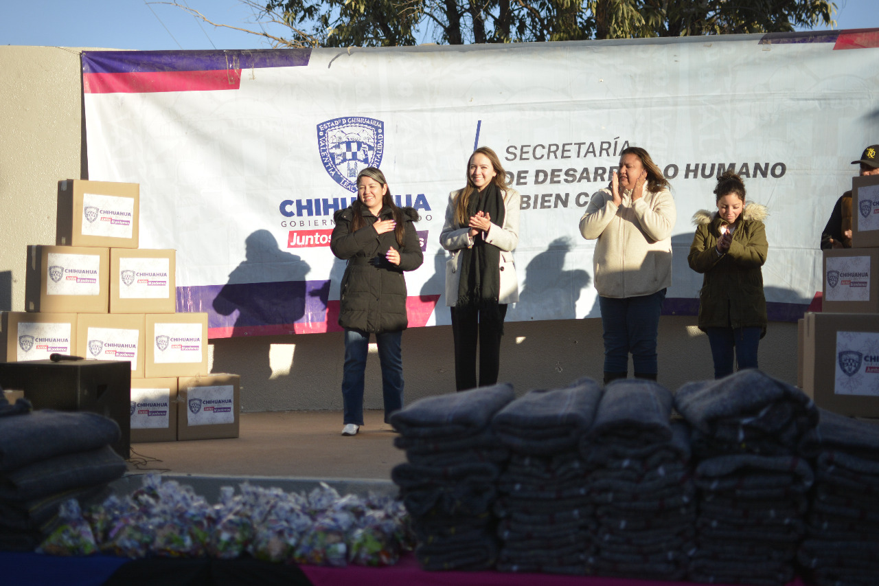 La titular de la dependencia, Carla Rivas destacó que el Gobierno del Estado mantiene cercanía con los chihuahuenses y prioriza el apoyar a los sectores con mayor situación de vulnerabilidad, motivo por el que en esta ocasión se llevaron apoyos alimentarios, cobijas y dulces a dicha comunidad.
