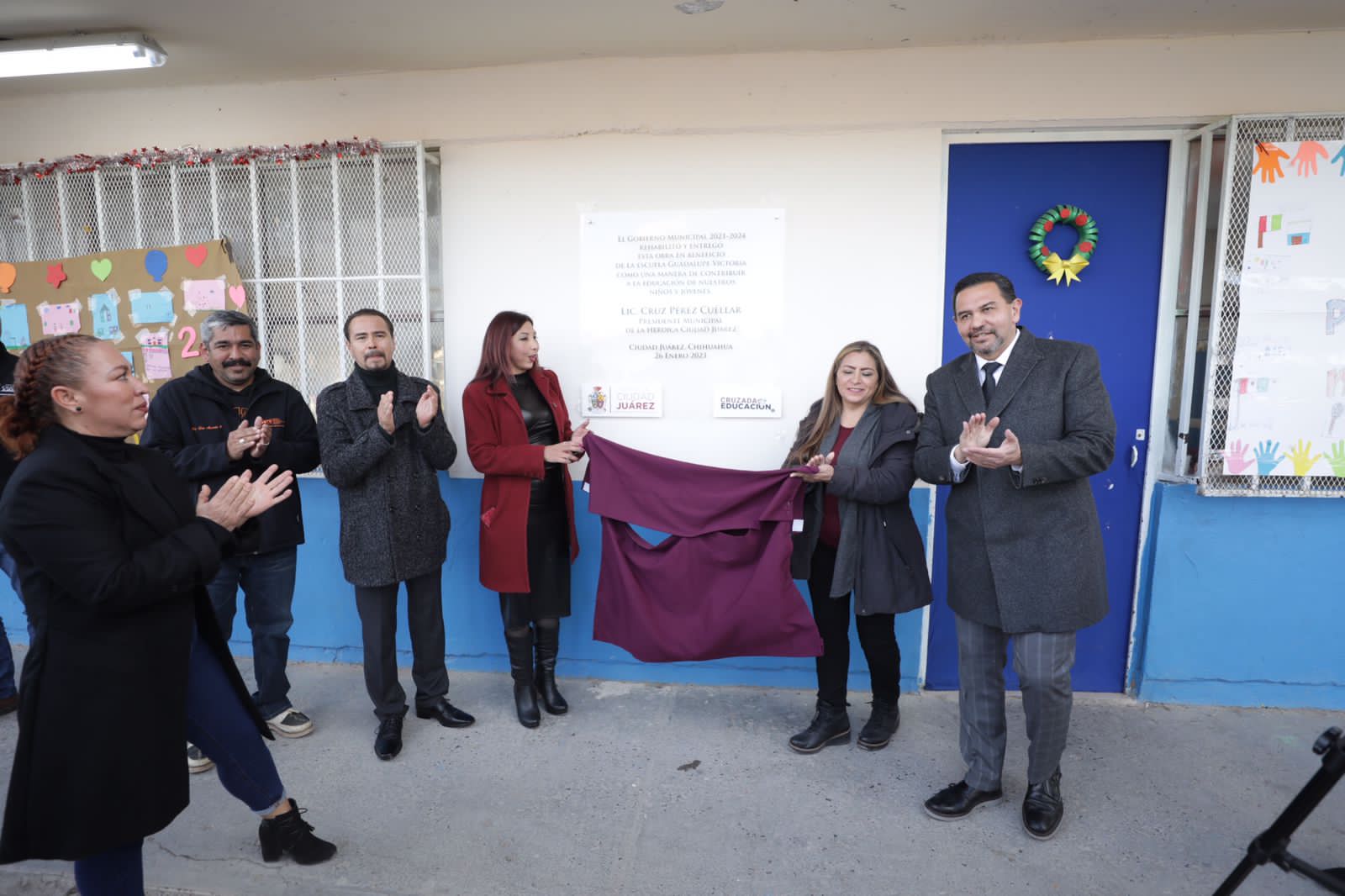 Entrega Cruz Pérez Cuéllar obras de rehabilitación en escuela Guadalupe Victoria.