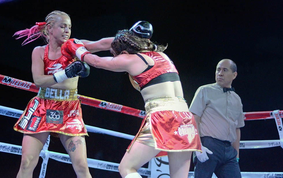La juarense Karina “La Bella” se convirtió en la primera doble campeona mundial al conquistar el título Organización Universal de Boxeo al vencer por decisión unánime a la de Victoria, Durango, Araceli “Muñeca” Palacios, en el Gimnasio Municipal Josué Neri Santos.