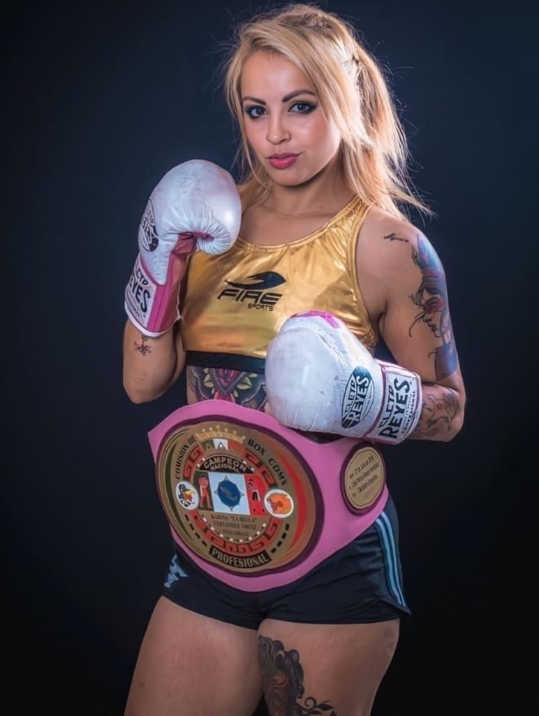 Karina “La Bella” Fernández fue coronada como doble campeona del mundo en el peso gallo y es la primera mujer en la historia del boxeo juarense en lograr esta hazaña, entre otros éxitos boxísticos.