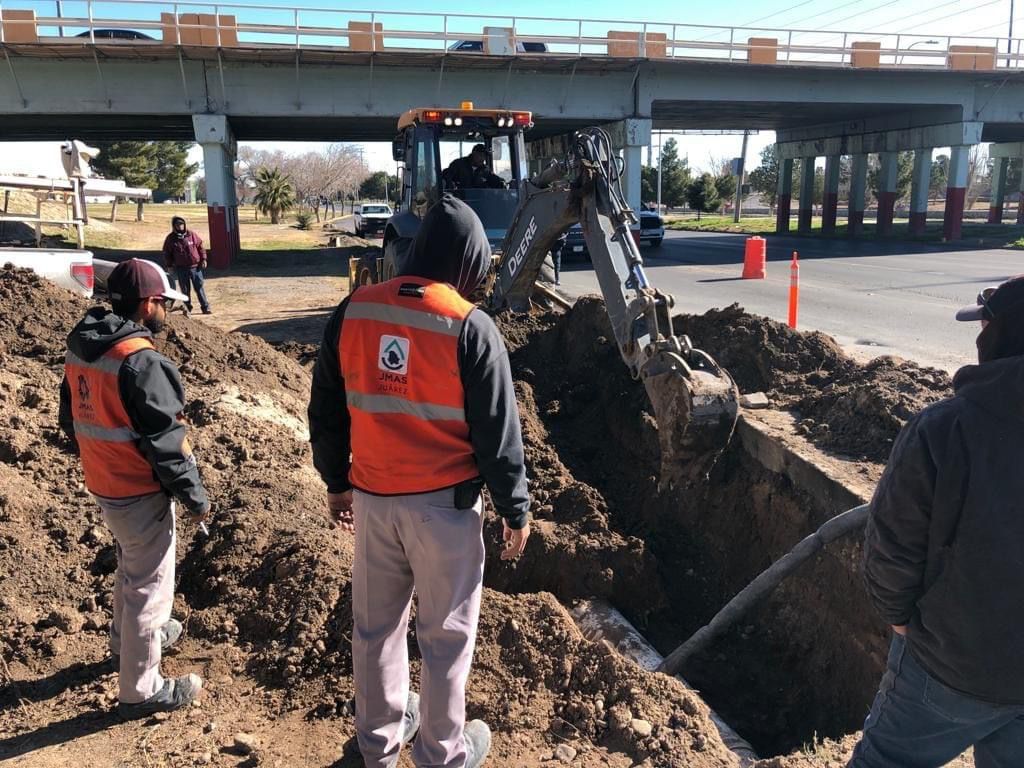 Trabajadores de la Dirección de Parques y Jardines arreglaron una tubería de agua tratada que proviene de la planta norte y que provee del líquido a El Chamizal, dio a conocer el titular de la dependencia, Daniel Iván Zamarrón Saldaña.
