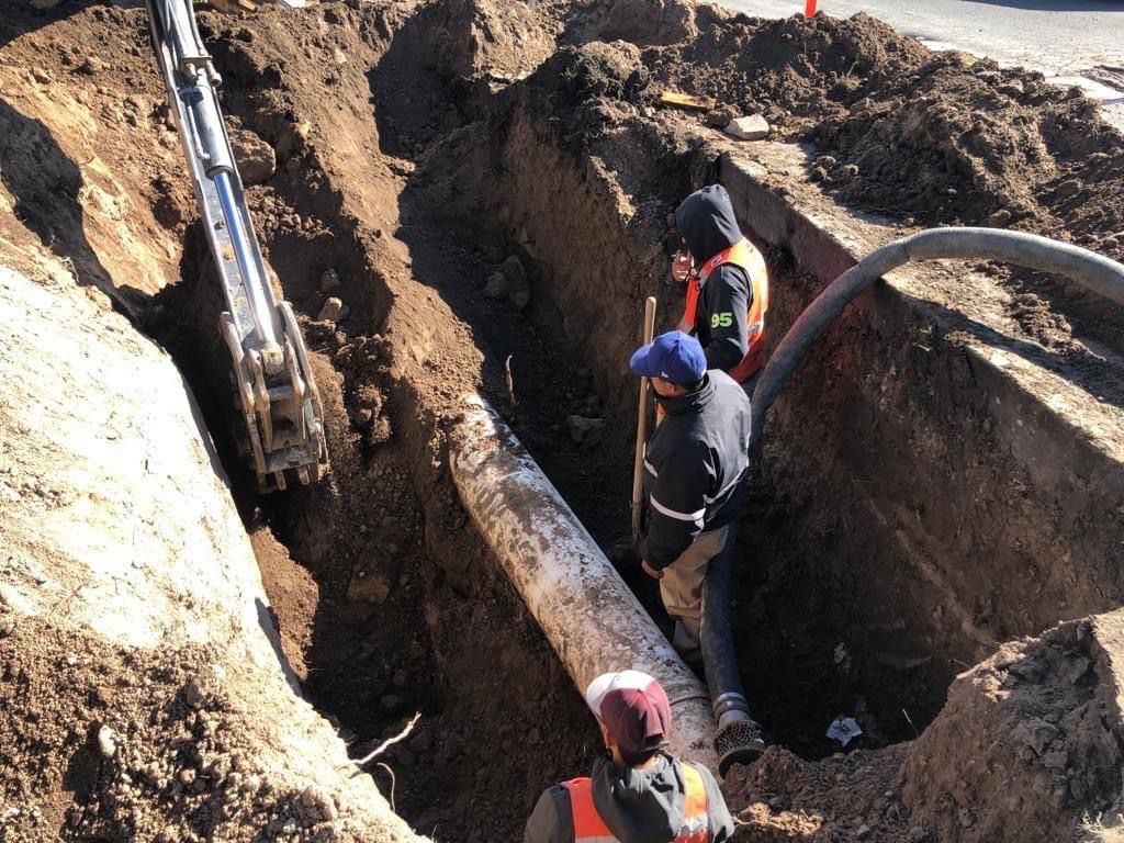 Semanas atrás habían recibido el reporte de una fuga, lo que causó un brote de agua en la calle, por lo que se llevó a cabo la reparación correspondiente con el apoyo de una máquina retroexcavadora de la Dirección de Obras Públicas, abrieron el terreno y se detectó la falla en la tubería de 15 pulgadas, explicó Zamarrón.
