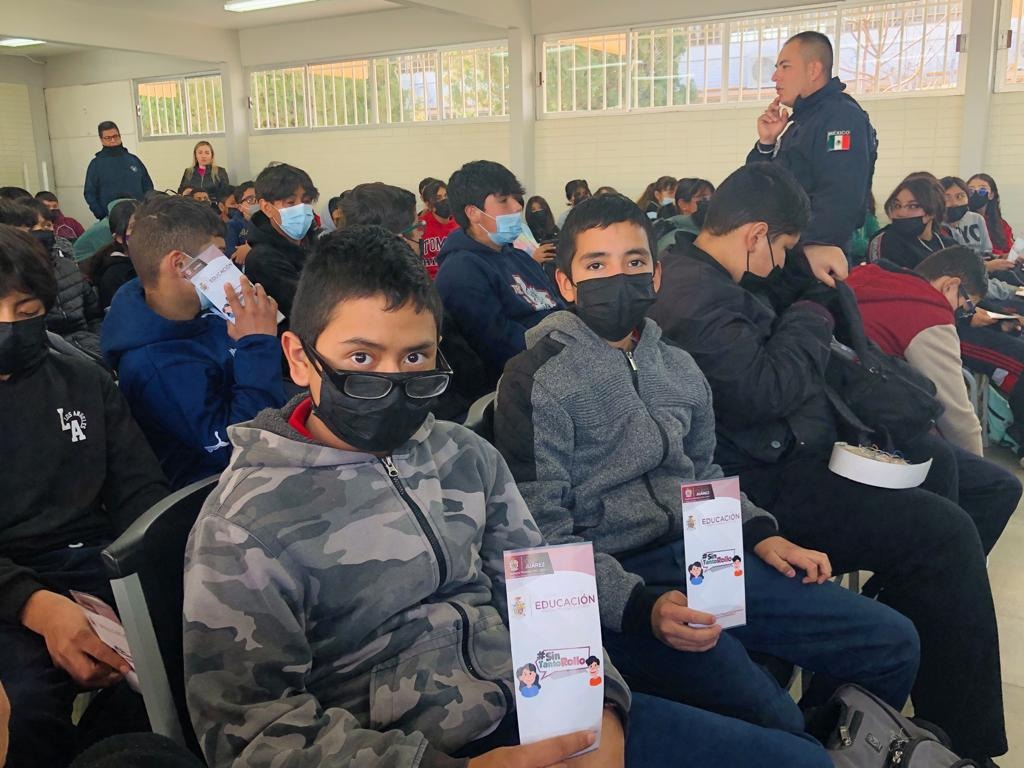 Con el apoyo de varias dependencias, la Dirección de Educación Municipal llevó el programa “Sin Tanto Rollo” a los alumnos de la Secundaria Técnica Número 1.