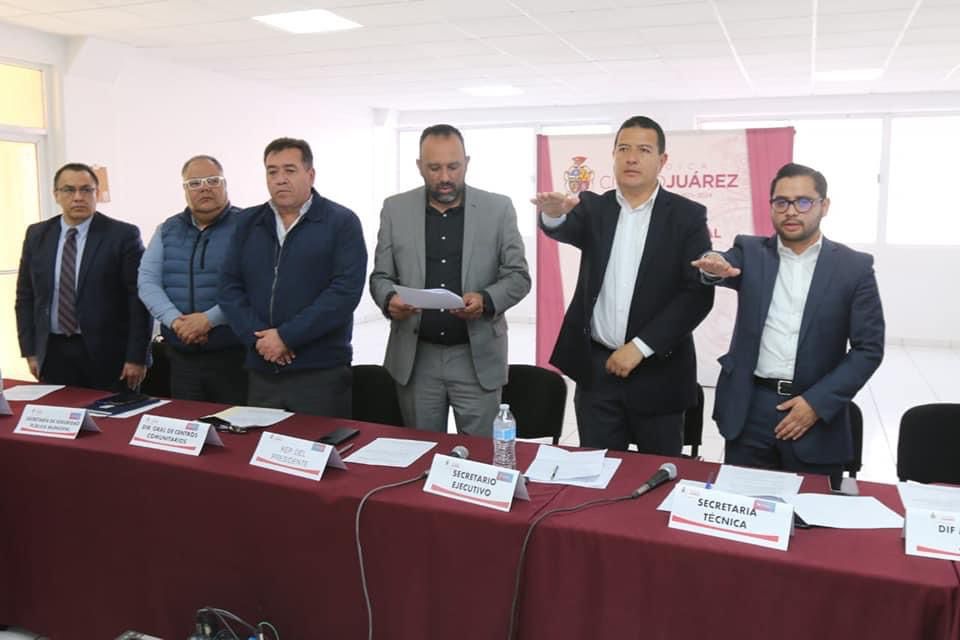 La sesión fue presidida por el Secretario del Ayuntamiento, Hector Ortiz Orpinel, quien tomó protesta de Hugo Vallejo Quintana, director de Desarrollo Social como Secretario Ejecutivo y de Rubén García, del área jurídica como Secretario Técnico.