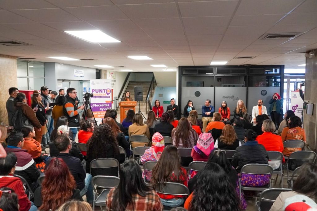 El Gobierno del Estado y el Municipio de Chihuahua, realizaron la instalación del programa “Punto Naranja” en el edificio Héroes de la Revolución, para prevenir y atender cualquier tipo de violencia contra mujeres, niñas y adolescentes.