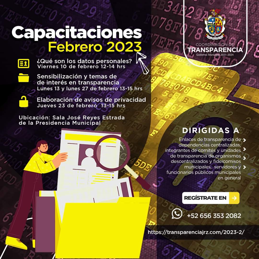 Además, las capacitaciones continuarán el 27 de febrero de 1:00 a 3:00 de la tarde en la sala José Reyes Estrada del primer piso de la Presidencia Municipal.