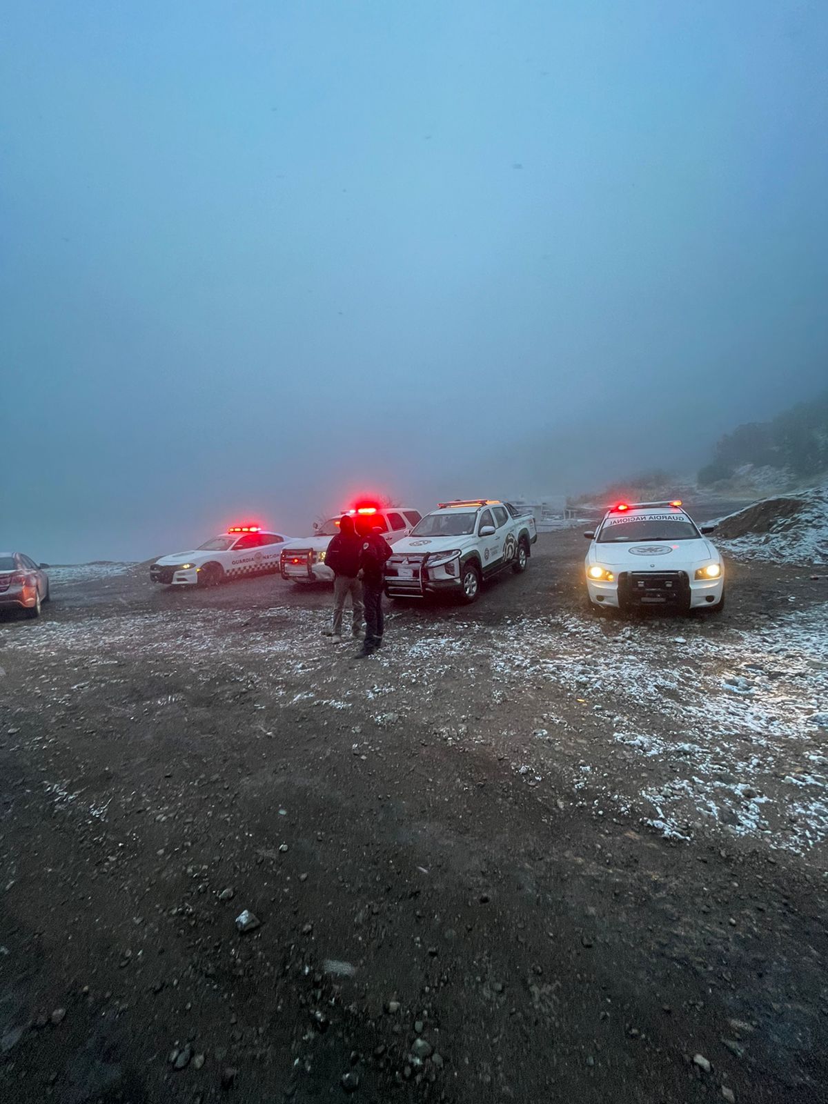 Elementos de la Guardia Nacional en coordinación con personal de Protección Civil de los municipios de Janos, en Chihuahua y de Agua Prieta, en Sonora, alrededor de las 18:30 horas cerraron la circulación en la carretera que comunica a ambas poblaciones, debido a la presencia de nieve en la carpeta asfáltica, a la altura del Puerto San Luis.