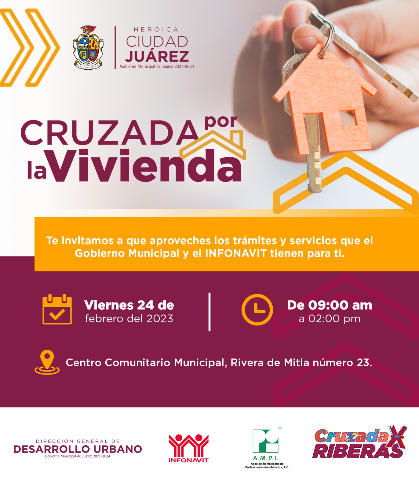 El próximo viernes 24 de febrero el Gobierno Municipal, en coordinación con el Instituto del Fondo Nacional de la Vivienda para los Trabajadores (INFONAVIT) y la Asociación Mexicana de Profesionales Inmobiliarios (AMPI), llevará al fraccionamiento Riberas del Bravo la Cruzada por la Vivienda.