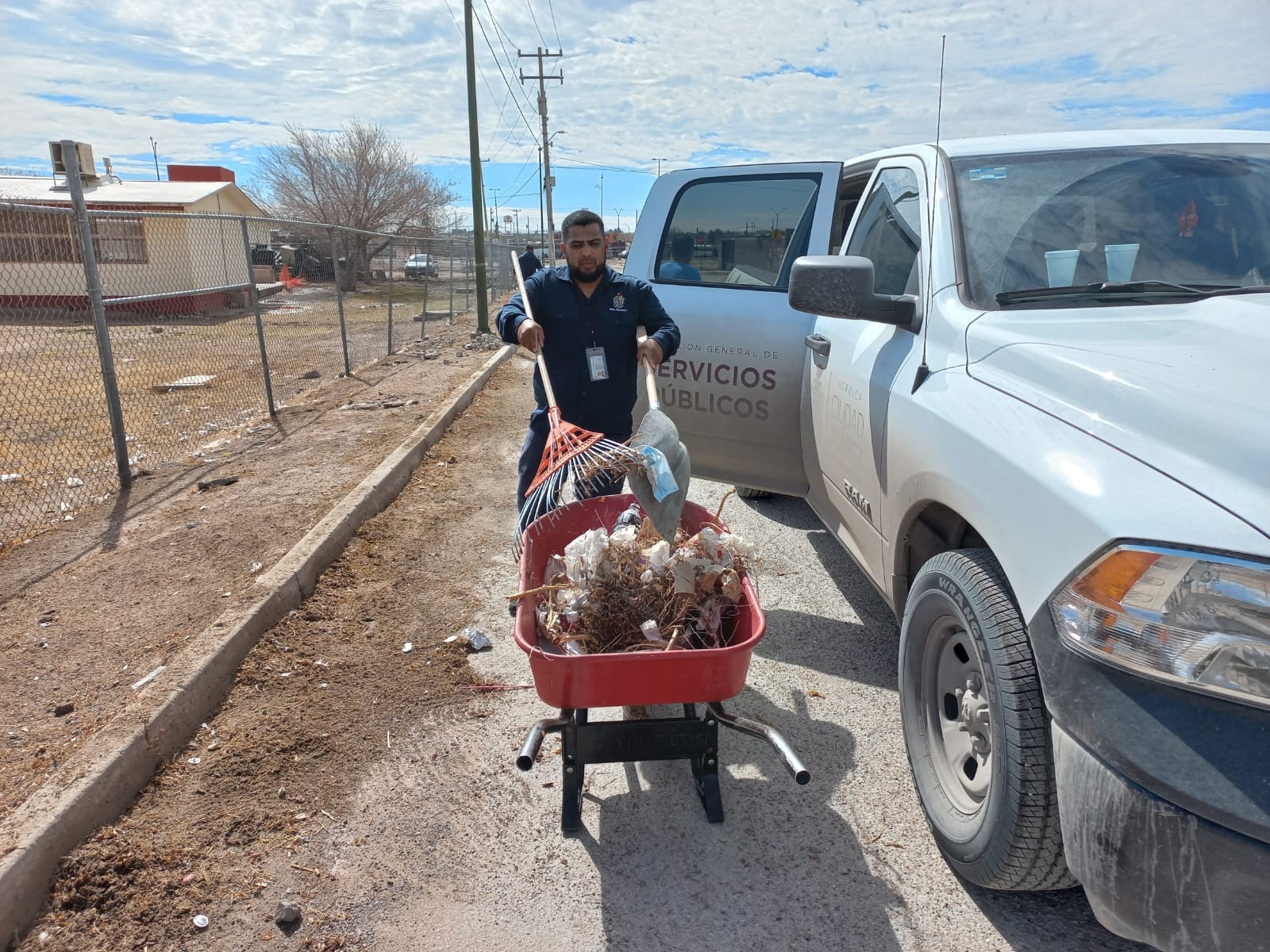 Agregó que ayer se atendió la petición de limpieza de la Escuela Primaria Thomas Alba Edison, en la colonia Los Ojitos de Riberas del Bravo etapa V, recogiendo basura, tierra de arrastre y hierbas secas.