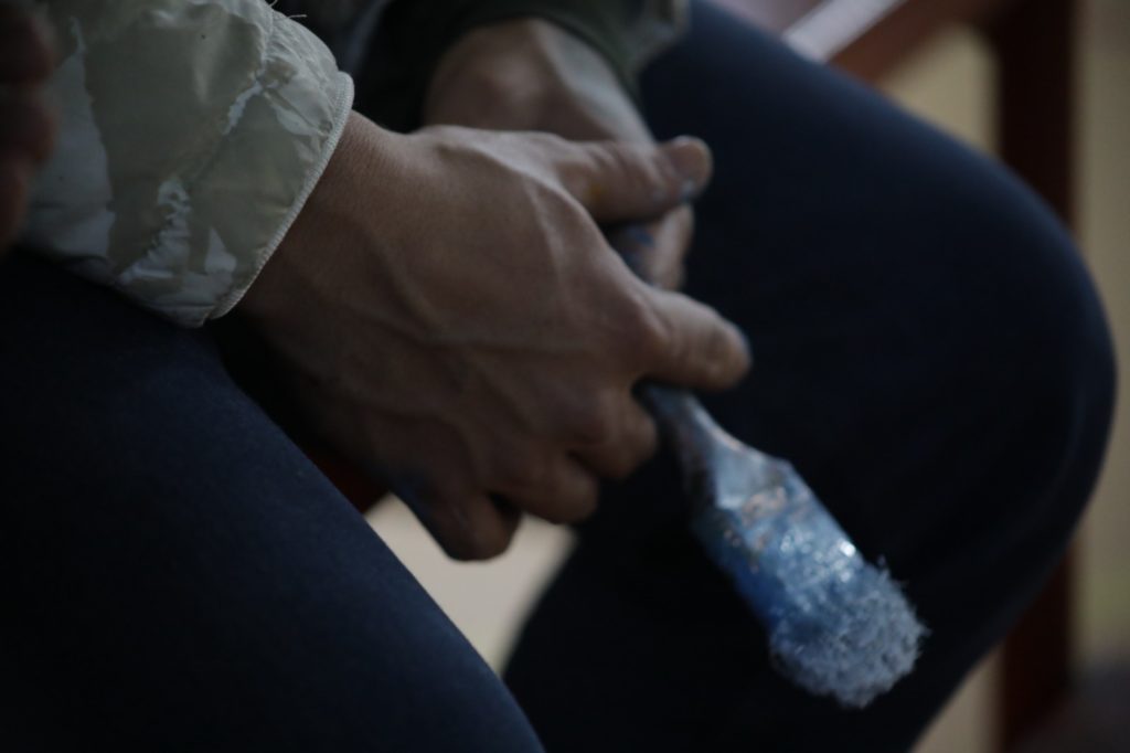 Migrante venezolano dona su arte al albergue Kiki Romero.