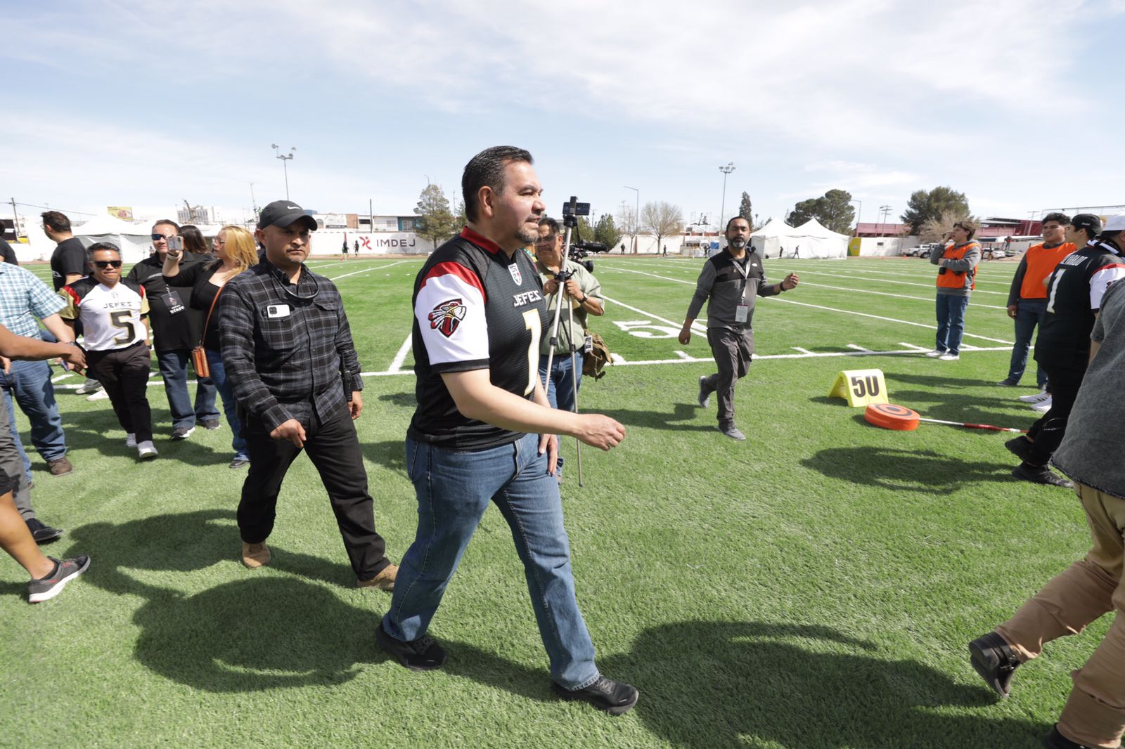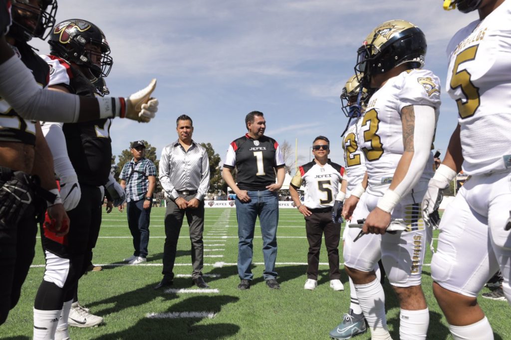 El Presidente Municipal Cruz Pérez Cuéllar, acudió esta tarde al arranque de la temporada de la Liga Fútbol Americano, donde se enfrentaron los Jefes de Juárez contra los Caudillos de Chihuahua.