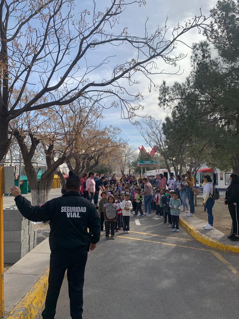 Un grupo de 121 menores, 32 padres de familia y 10 docentes del Jardín de Niños “María Guillermina Valdez”, visitaron las instalaciones de la Mini Ciudad Vial, con el objetivo de aprender jugando sobre los temas principales que se exponen en el tema de seguridad vial.