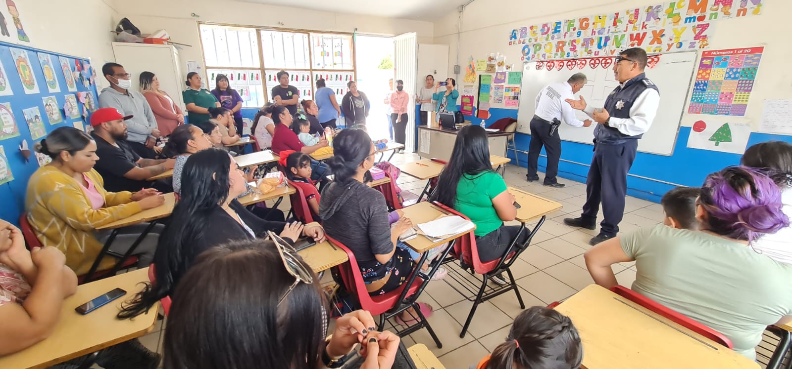 Con el objetivo de conformar una brigada escolar que durante los horarios de entrada y salida de clases coadyuve en el resguardo de la seguridad vial de los estudiantes, maestros y padres de familia de la Escuela Primaria Guadalupe Victoria, personal de la Coordinación General de Seguridad Vial impartió hoy una capacitación a 26 paterfamilias.