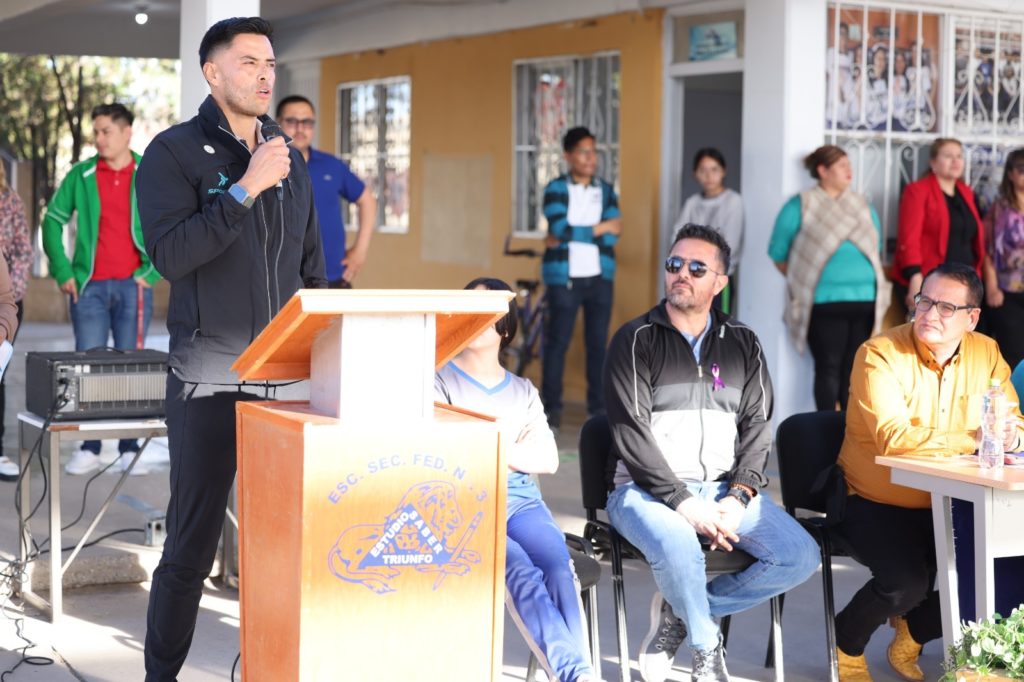 Con una gran algarabía, estudiantes de la Escuela Secundaria Federal número 3 recibieron la gira del Sistema para el Desarrollo Integral de la Familia, que preside Rubí Enríquez, y el Club de Futbol Bravos impulsando la educación y el deporte a través de dinámicas participativas.