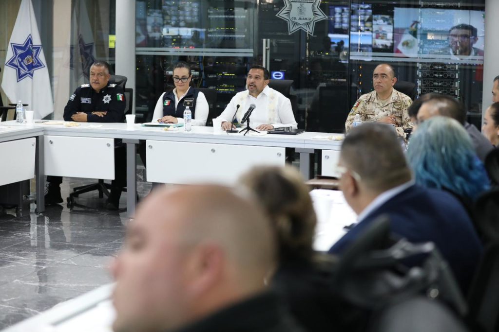 Durante la reunión de seguridad, el Presidente Municipal, Cruz Pérez Cuellar, destacó las acciones que emprende el municipio para atender, prevenir y erradicar la violencia de género, ejercicios que afirmó se complementarán y sumarán a esta estrategia nacional.