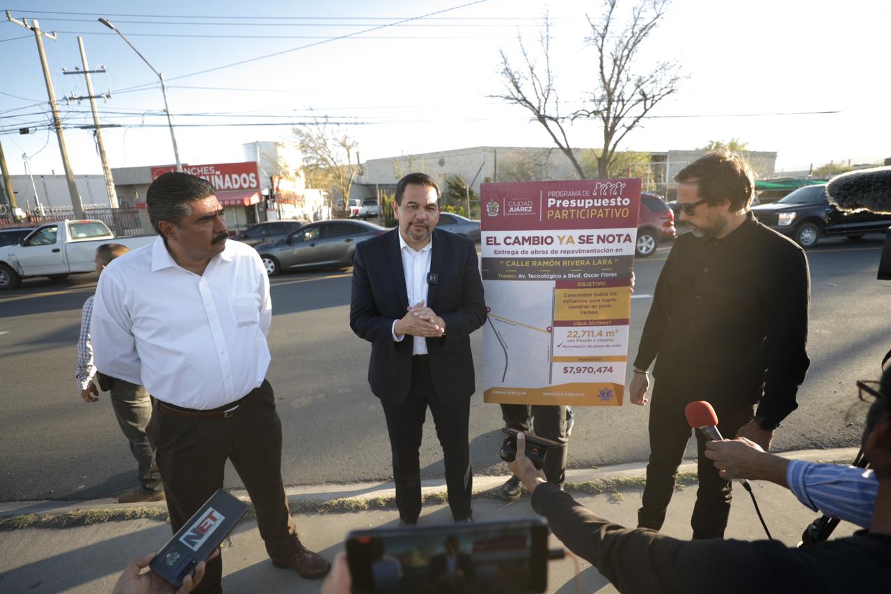 El Presidente Municipal, Cruz Pérez Cuéllar, llevó a cabo la entrega de obras de repavimentación de un tramo de la avenida Ramón Rivera Lara, la cual fue rehabilitada mediante el Programa de Mejoramiento de Vialidades 2022.