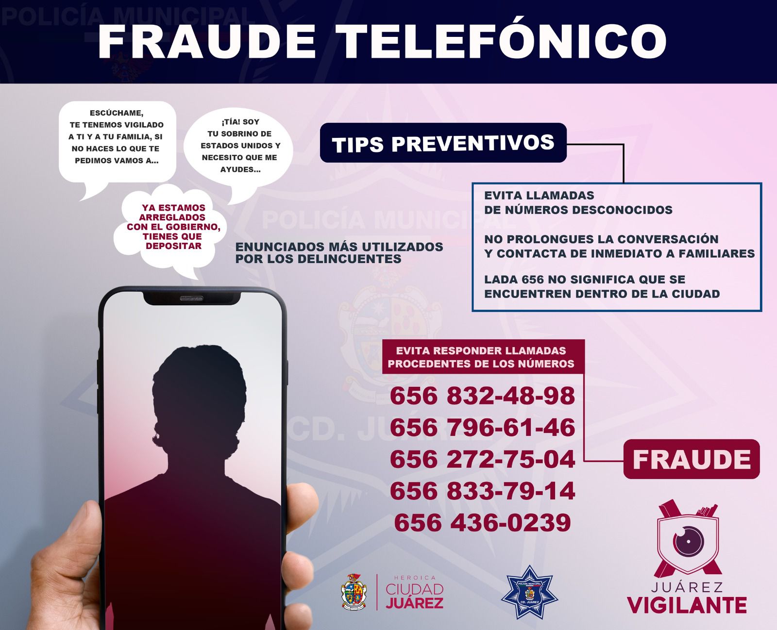 La Dirección de Investigación de la Secretaría de Seguridad Pública Municipal reitera a la ciudadanía la recomendación para mantenerse alerta ante el fraude telefónico.
