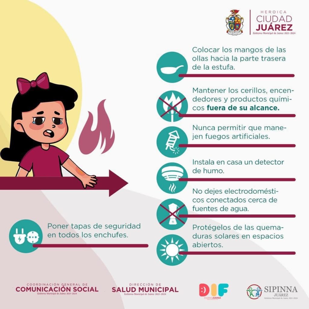 Entre las recomendaciones se pide a la ciudadanía no dejar a los infantes solos en la cocina, comprobar la temperatura de los alimentos y bebidas antes de ofrecérselas, así como evitar sostener a un bebé en brazos al momento de cocinar.