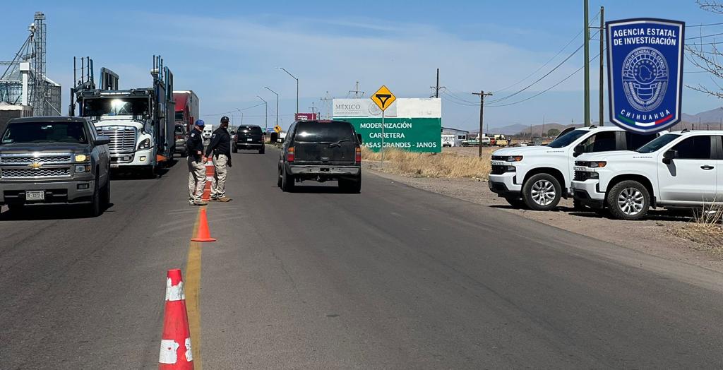 Elementos de la Agencia Estatal de Investigación adscritos a la Fiscalía de Distrito Zona Noroeste, instrumentaron un operativo en el tramo carretero Nuevo Casas Grandes – Janos, con la finalidad de detectar vehículos con reporte de robo, armas de fuego y droga.