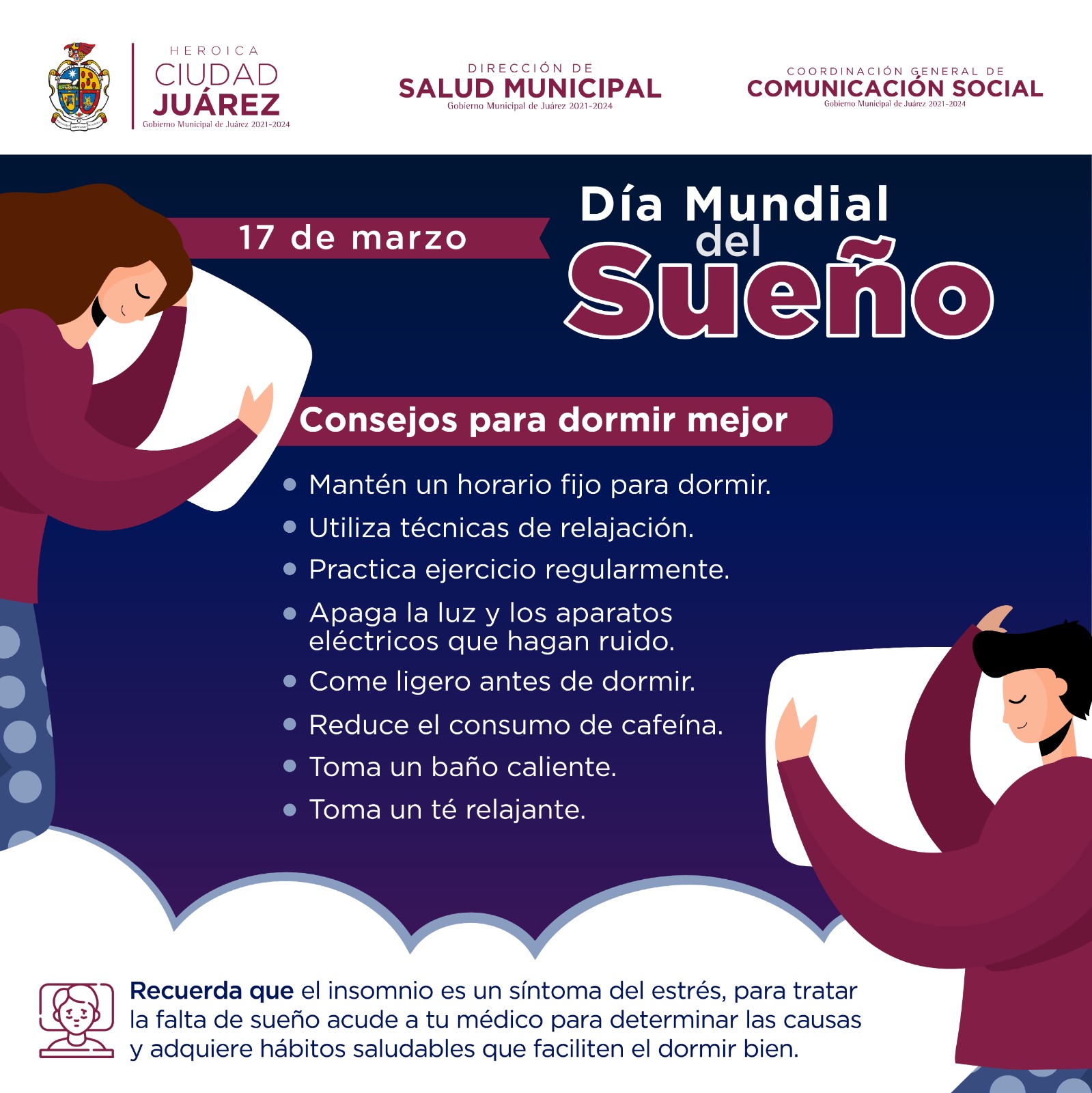 Este 17 de marzo la Dirección de Salud Municipal conmemora el Día Mundial del Sueño, fecha establecida para concientizar a la población sobre la existencia de los trastornos del sueño, a fin de prevenirlos y atenderlos correctamente.